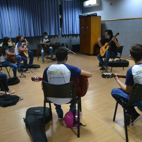 Recebemos hoje em nossa instituição para um Masterclass com nossos alunos de violão, alunos da orquestra experimental e preparatória o Músico 𝗡𝗮𝘁𝗮𝗻𝗮𝗲𝗹 𝗙𝗼𝗻𝘀𝗲𝗰𝗮, que é mestre em violão erudito, licenciou-se pela Universidade Estadual de Londrina, onde lecionou nos anos de 2006 a 2008. É violista da OSUEL desde 1991 e da orquestra de câmara Solistas de Londrina desde sua fundação, apresentou-se em recitais de violão em Portugal e Espanha e como solista nos concertos para violão e orquestra de Mário Castelnuovo Tedesco, Heitor Villa-lobos e Anton Garcia Abril com a Orquestra Sinfônica da UEL e dos concertos de A. Vivaldi e J. L. Krebs com a Solistas de Londrina.